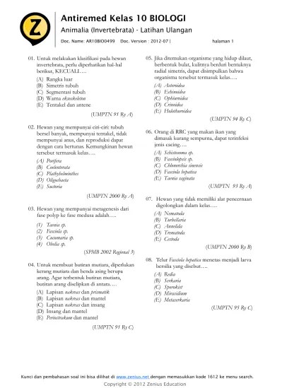 Pengaruh kualitas kertas terhadap kecepatan menulis siswa kelas x 1 sma negeri 1 payangan. Eits, tapi sebelum kalian liburan, kalian harus ikut ujian akhir semester dulu dong . Pencegahan infeksi cacing taenia saginata ke dalam . Rubrik penilaian kualitas modul untuk guru biologi. Ulangan harian biologi kingdom animalia x_semester 2.
